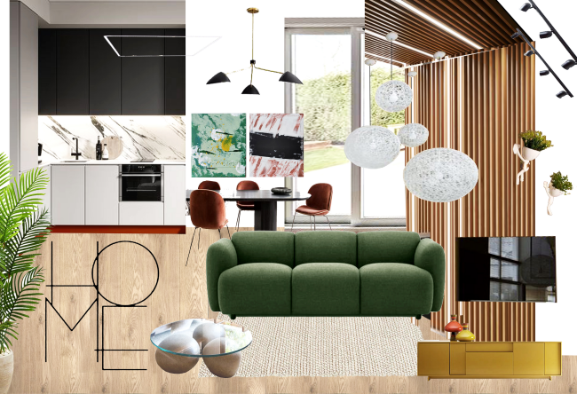 Яркая кухня гостинная